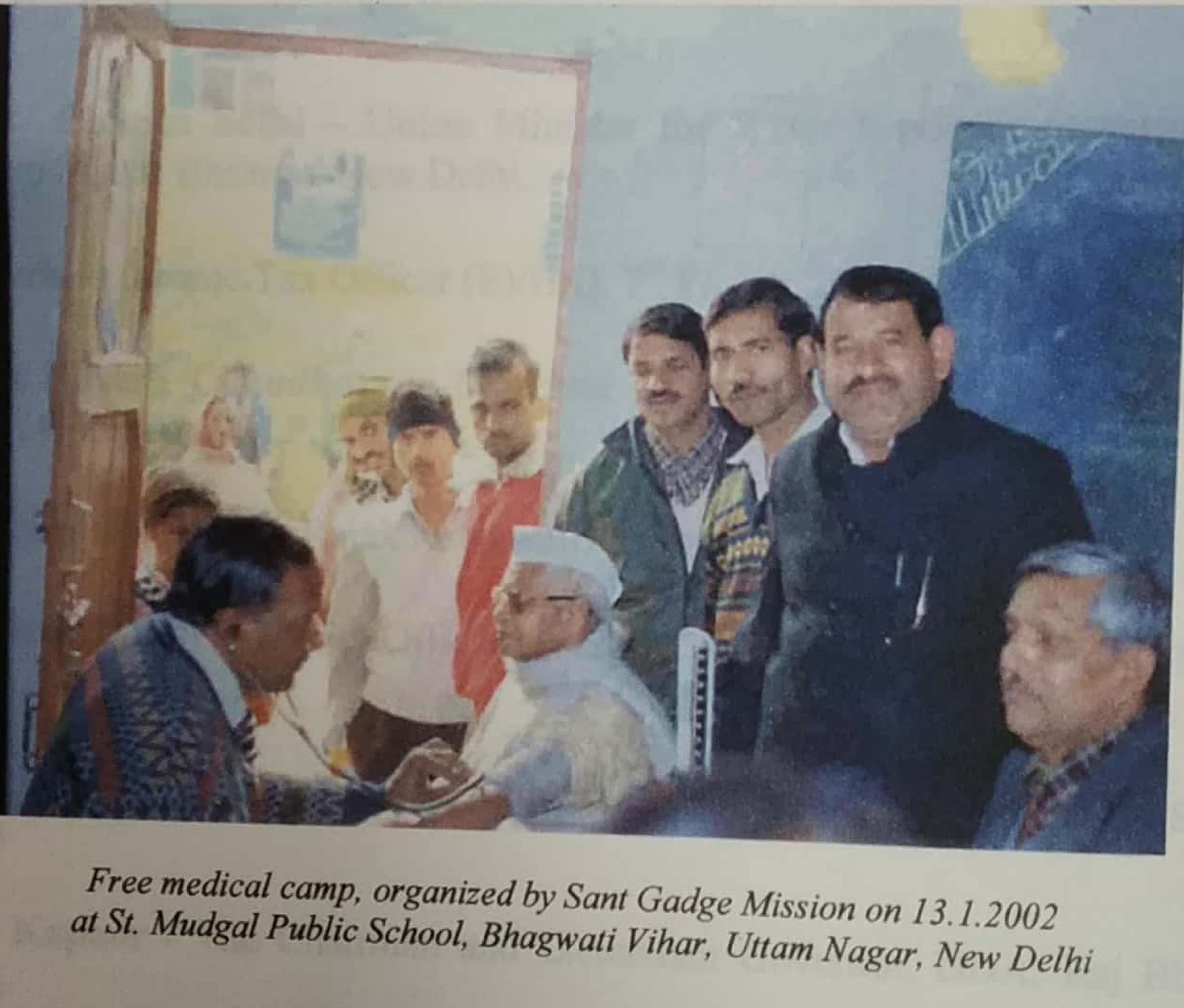 A free medical camp was organized by Sant Gadge Mission on 13.1.2002 at St. Mudgal Public School, Bhagwati Vihar, Uttam Nagar, New Delhi-59. About 250 patients were examined and they got free advice and medicines. Following Doctors attended in this camp.