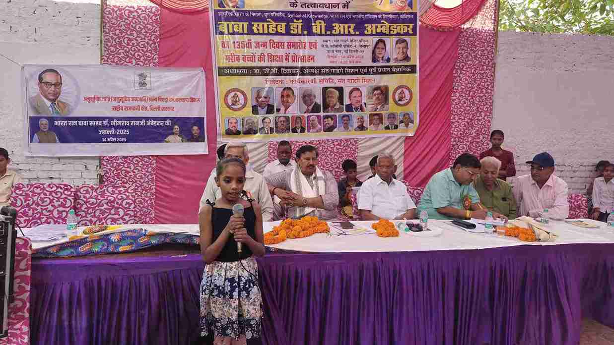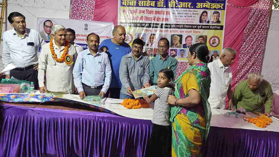 इस समारोह की अध्यक्षता डॉ जी डी दिवाकर, अध्यक्षत, संत गाडगे मिशन ने की। इस अवसर पर कक्षा,1 से कक्षा,12 वी के छात्रों को स्टेशनरी देकर उनका होंसला अफजाई किया। अतः बुद्धजीवी साथियों ने बाबा साहेब के जीवन संघर्ष , त्याग एवम् बलिदान केविषय में जानकारी दी तथा अपने बहुमुल्य सुझावो से अवगत कराया। श्री छोटे लाल जी ने छात्रों को डॉ ए पी जे कलाम जी द्वारा रचित पुस्तक “ अग्नि की उड़ान “ सप्रेम भेंट की l डॉ अजय रजक जी ने भारत रत्न बाबा डा. बी.आर.अंबेडकर को दलितों के लिए मुक्ति दाता, बहुजन को समता, स्वतंत्रता, व भाई चारे से रहने के लिए संविधानिक अधिकार आदि के बारे में जानकारी दी ।