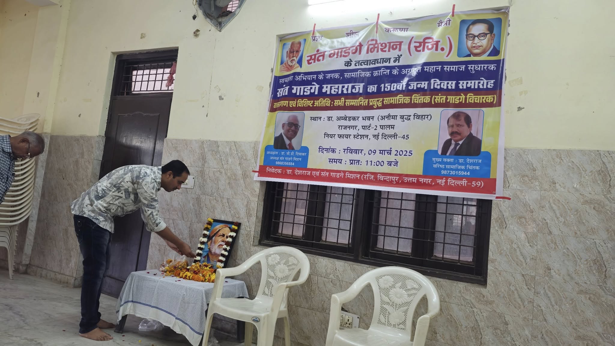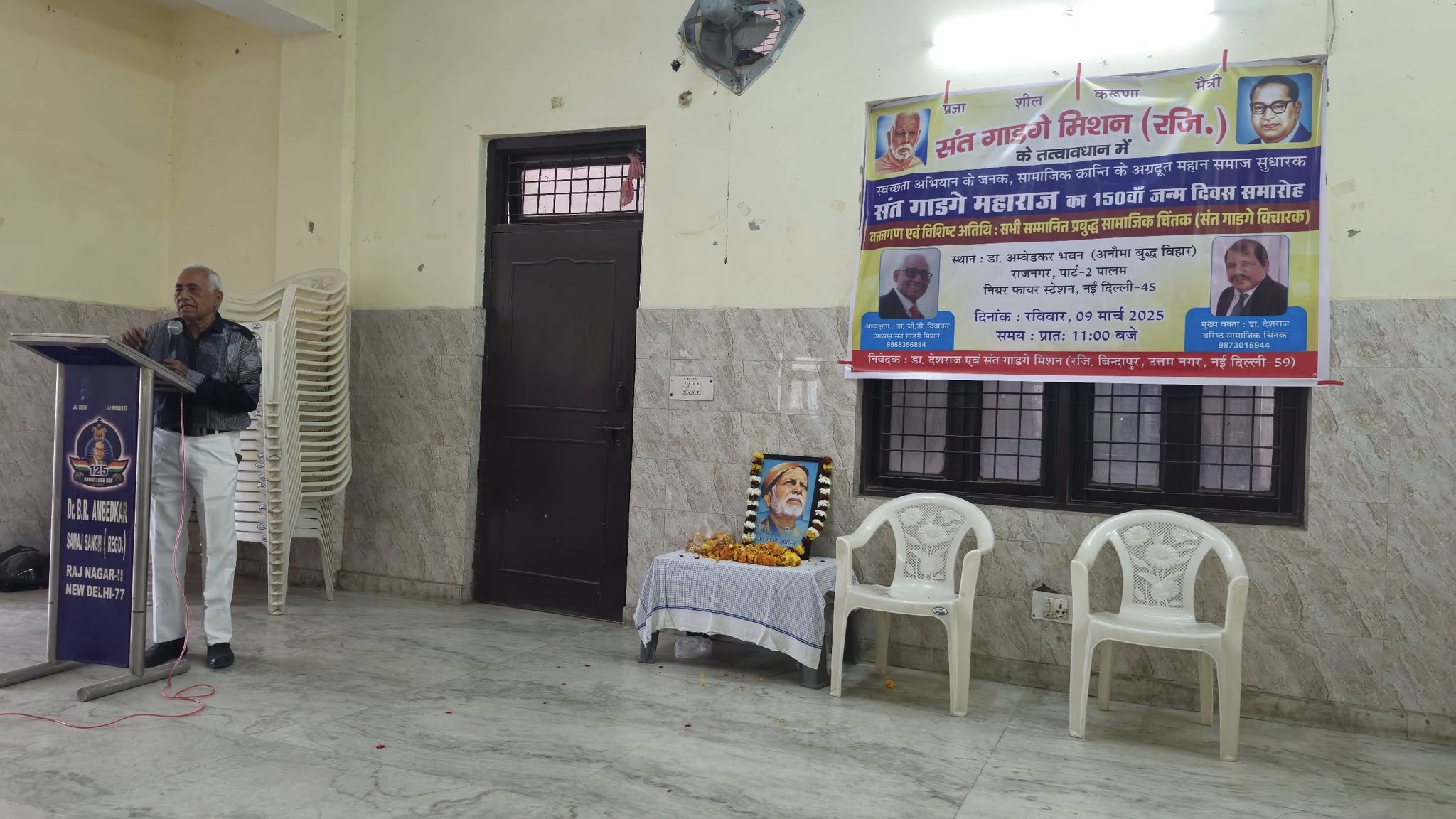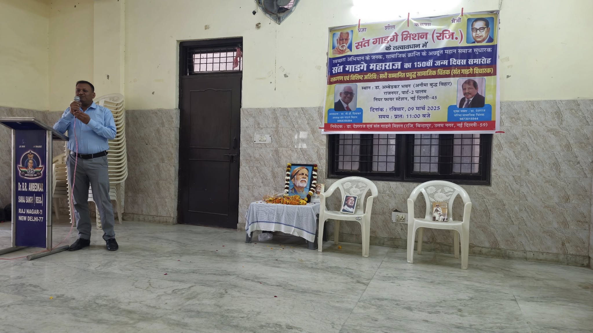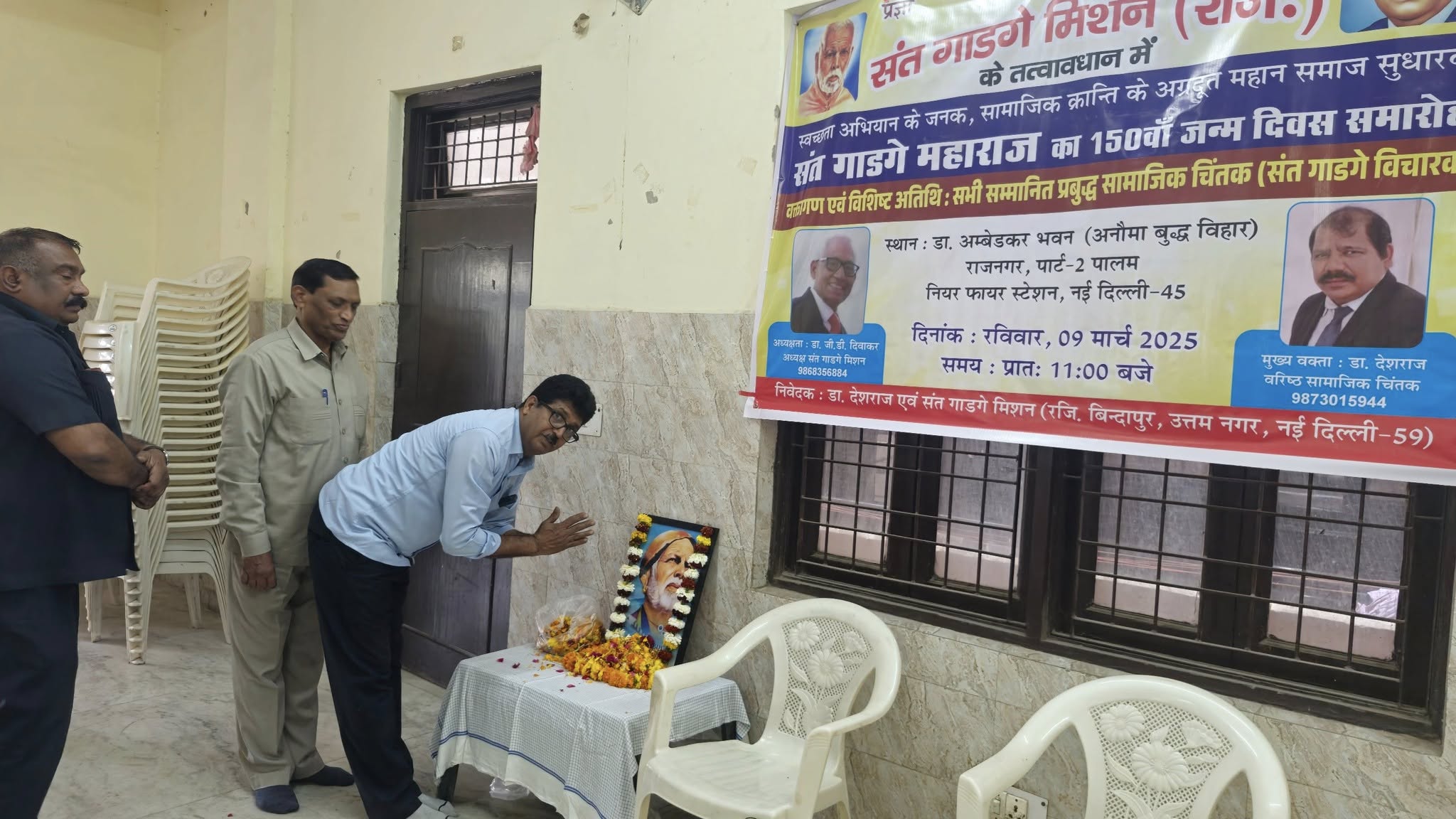 संत गाडगे मिशन के तत्वावधान में डॉ अंबेडकर समिति, राज नगर के सहयोग से आज दिनांक 9 मार्च, 2025 को स्वच्छता मिशन के जनक,महामानव, राष्ट संत एवम् शिक्षा के अग्रदूत, समाज सुधारक, संत गाडगे जी महाराज का 150 वां जन्म दिवस समारोह डॉ अंबेडकर भवन, राज नगर, पार्ट,नई दिल्ली में बड़े धूम धाम से मनाया गया।