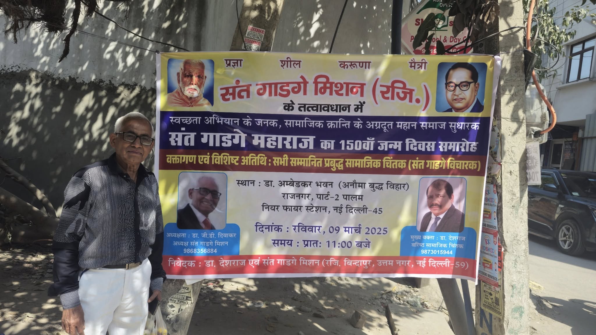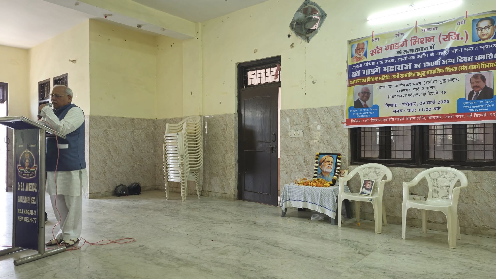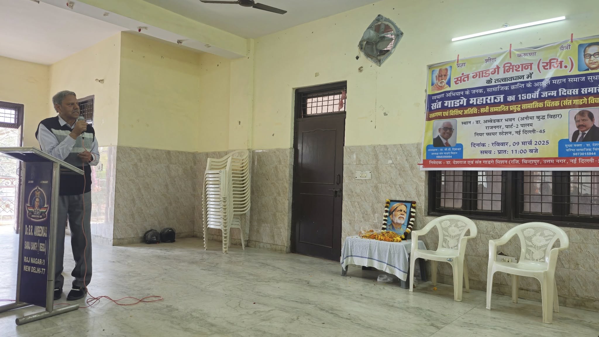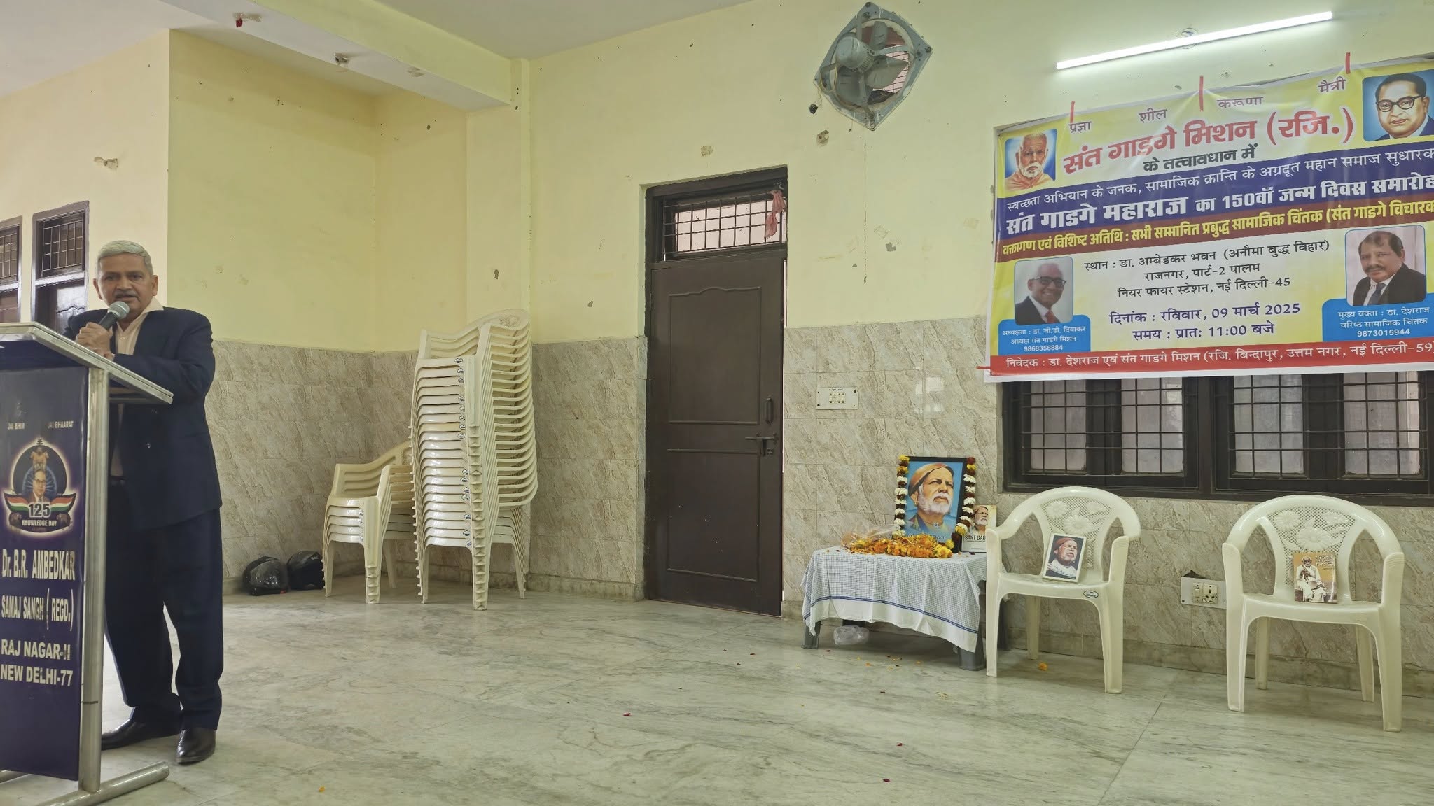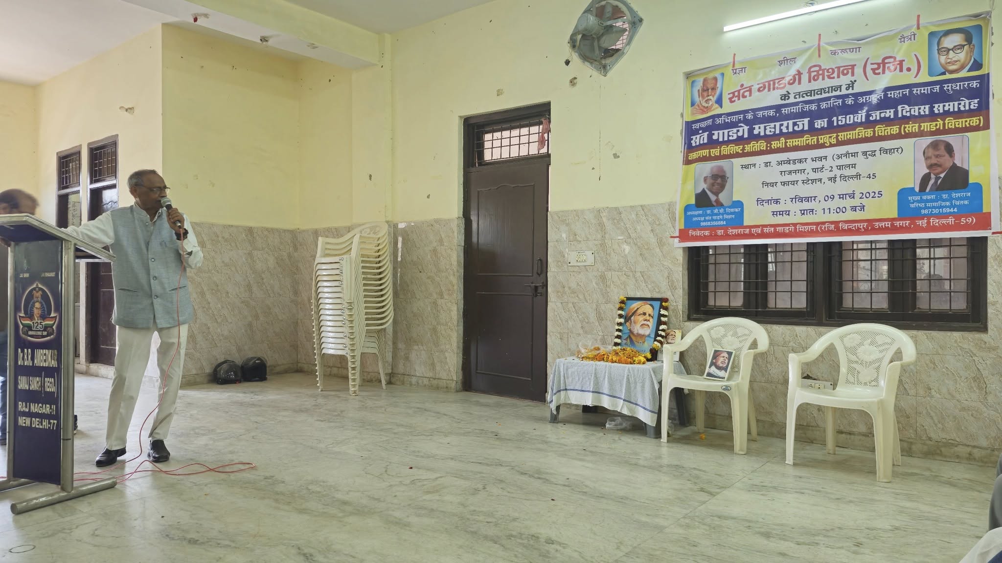 संत गाडगे मिशन के तत्वावधान में डॉ अंबेडकर समिति, राज नगर के सहयोग से आज दिनांक 9 मार्च, 2025 को स्वच्छता मिशन के जनक,महामानव, राष्ट संत एवम् शिक्षा के अग्रदूत, समाज सुधारक, संत गाडगे जी महाराज का 150 वां जन्म दिवस समारोह डॉ अंबेडकर भवन, राज नगर, पार्ट,नई दिल्ली में बड़े धूम धाम से मनाया गया।