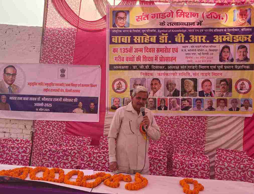 संत गाडगे मिशन के तत्वावधान में *आधुनिक भारत के निर्माता, युग परिवर्तक, symbol of knowledge, भारत रत्न एवम् भारतीय संबिधान के शिल्पीकर, बोधिसत्व बाबा साहेब डॉ बी आर अंबेडकर जी का,135 वाँ जन्म दिवस समारोह 4.00 बजे (शाम) , दिनांक: 14/04/2025 ( सोमवार) *संत गाडगे मंदिर परिसर*, बिंदापुर, जे जे कालोनी, उत्तम नगर, नई दिल्ली- 110059 पर बड़े ही धूम धाम से मनाया गया।