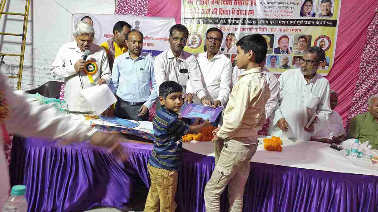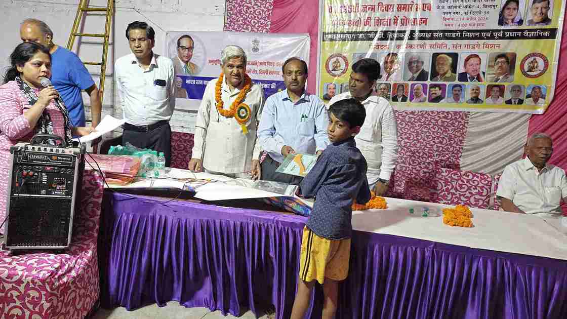 इस समारोह की अध्यक्षता डॉ जी डी दिवाकर, अध्यक्षत, संत गाडगे मिशन ने की। इस अवसर पर कक्षा,1 से कक्षा,12 वी के छात्रों को स्टेशनरी देकर उनका होंसला अफजाई किया। अतः बुद्धजीवी साथियों ने बाबा साहेब के जीवन संघर्ष , त्याग एवम् बलिदान केविषय में जानकारी दी तथा अपने बहुमुल्य सुझावो से अवगत कराया। श्री छोटे लाल जी ने छात्रों को डॉ ए पी जे कलाम जी द्वारा रचित पुस्तक “ अग्नि की उड़ान “ सप्रेम भेंट की l डॉ अजय रजक जी ने भारत रत्न बाबा डा. बी.आर.अंबेडकर को दलितों के लिए मुक्ति दाता, बहुजन को समता, स्वतंत्रता, व भाई चारे से रहने के लिए संविधानिक अधिकार आदि के बारे में जानकारी दी ।