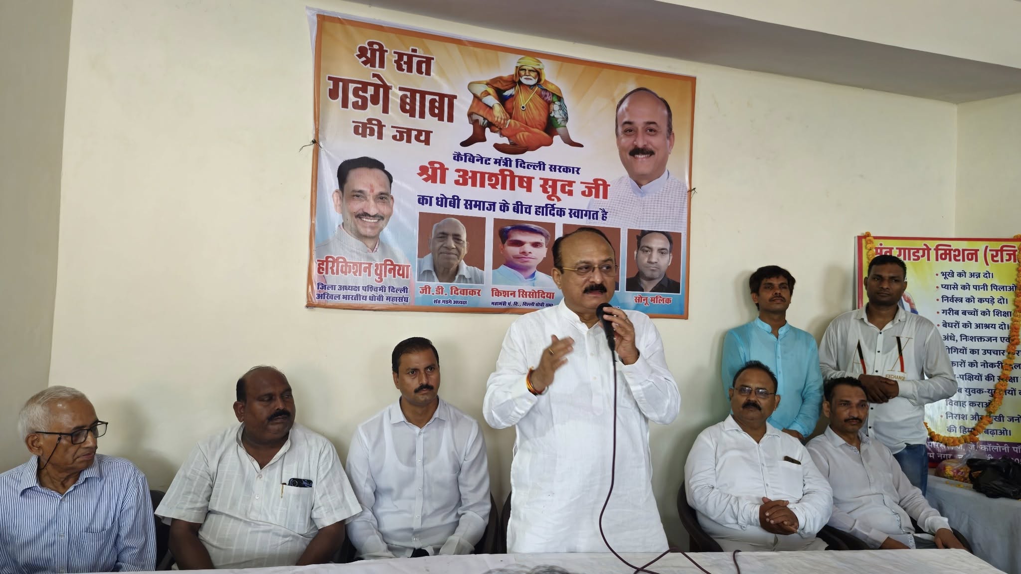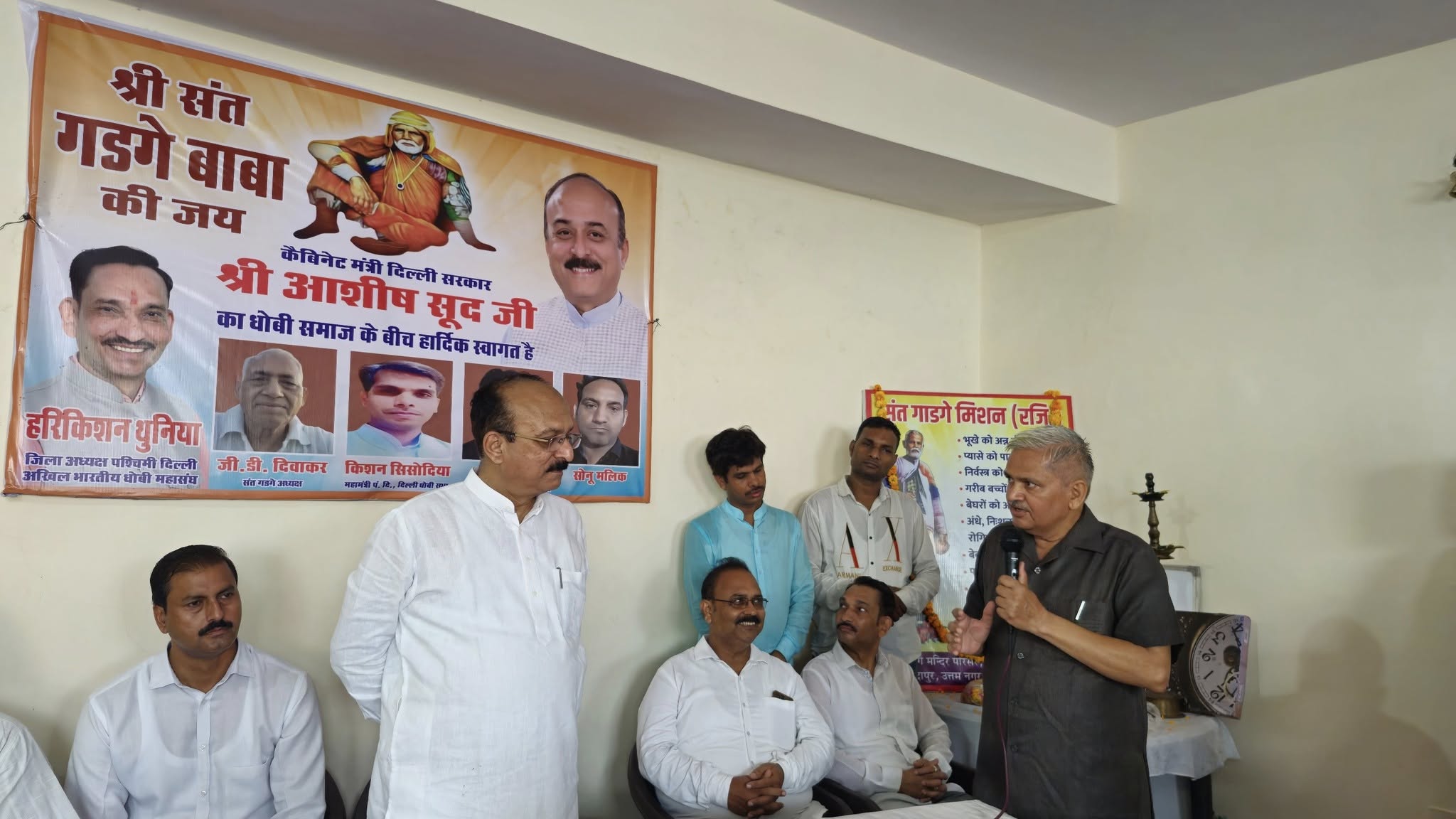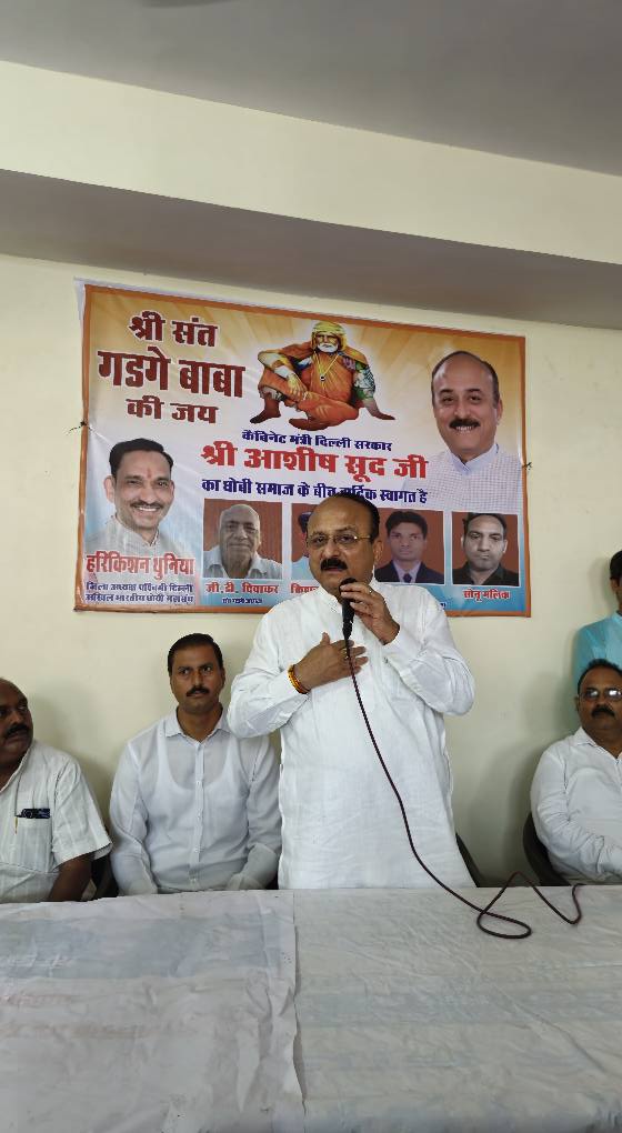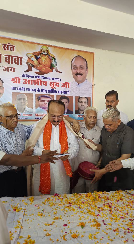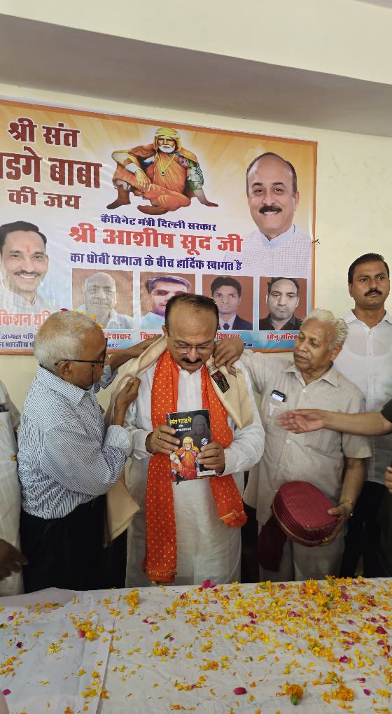दिनांक 10 जुलाई 2025, गुरु पूर्णिमाके पावन अवसरपर बिंदापुर स्थितसंत गाडगे जीमहाराज मंदिर मेंश्री आशीष सूदजी, दिल्ली केगृह, बिजली औरशिक्षा मंत्री जीने दर्शन करआशीर्वाद प्राप्त किया। तत्पश्चात, धोबी समाज द्वाराआयोजित समारोह मेंमुख्य रूप से उपस्थित रहकर अपनेविचार व्यक्त करनेका सौभाग्य प्राप्तहुआ ।